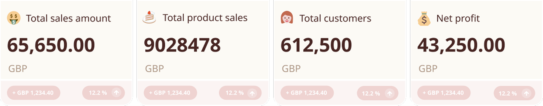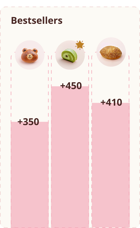 Role-based views for cashiers, bakers and managers. quick glance widgets for sales data, popular items and employee performance. Layouts are easy to configure and allow each user to prioritise information most relevant to their role.