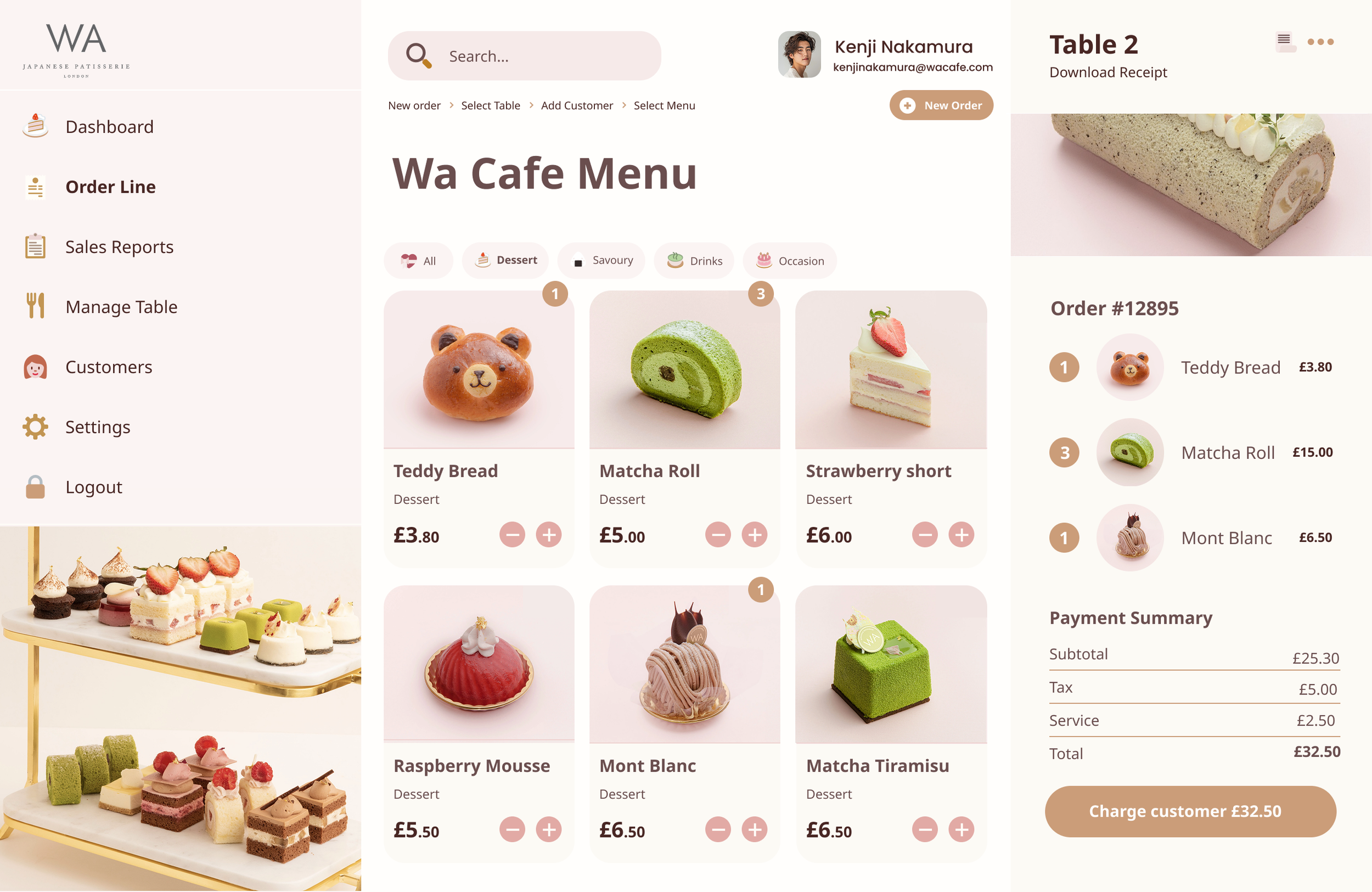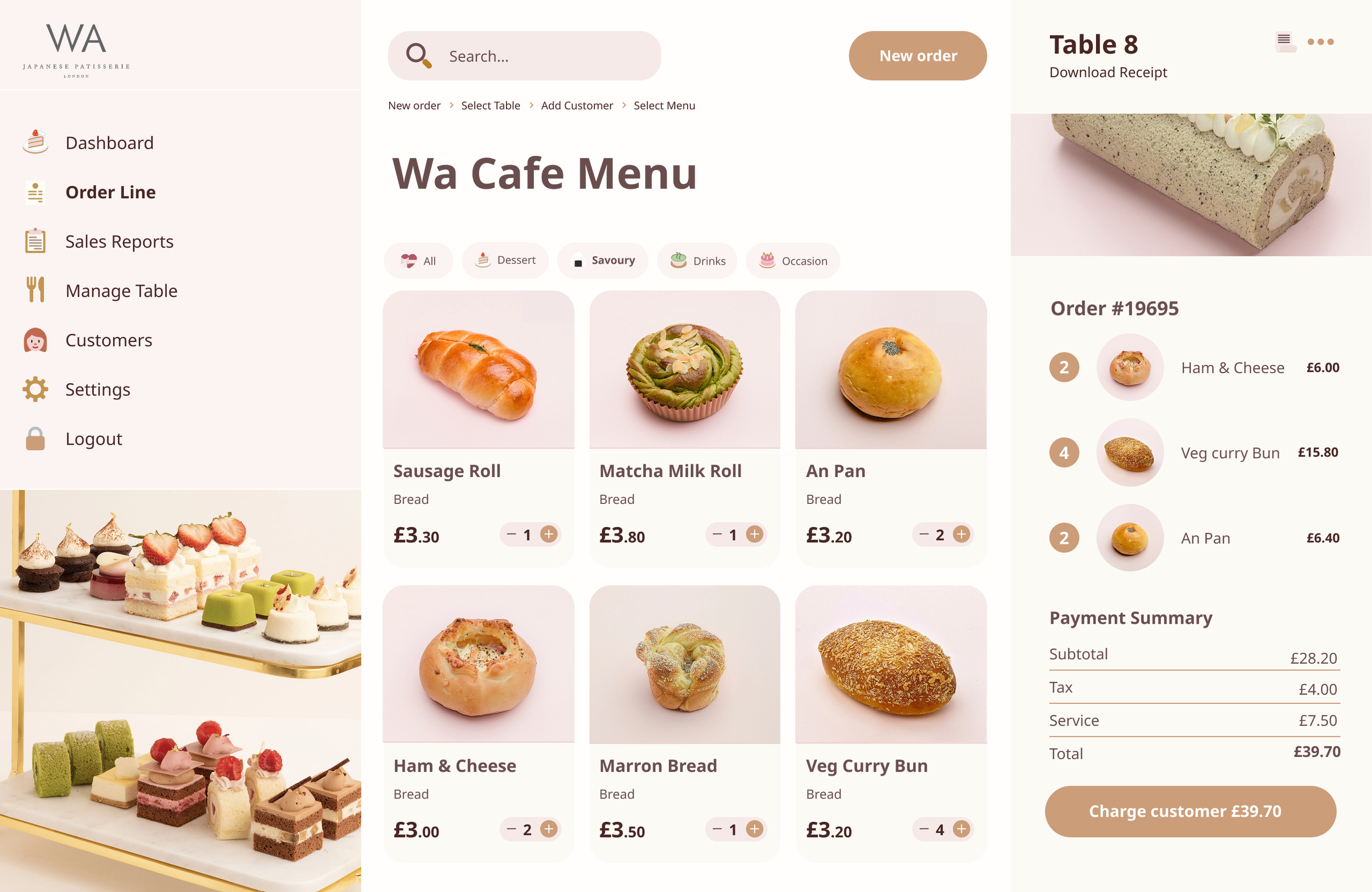 Wa Café is a popular London bakery known for its artisanal breads and pastries. However, as the café grew, its existing point-of-sales (POS) system began to show its age. The system was slow, unintuitive, and inefficient during busy periods. Our mission was to reimagine the POS system to streamline transactions, reduce wait times, and ultimately improve both employee and customer satisfaction.